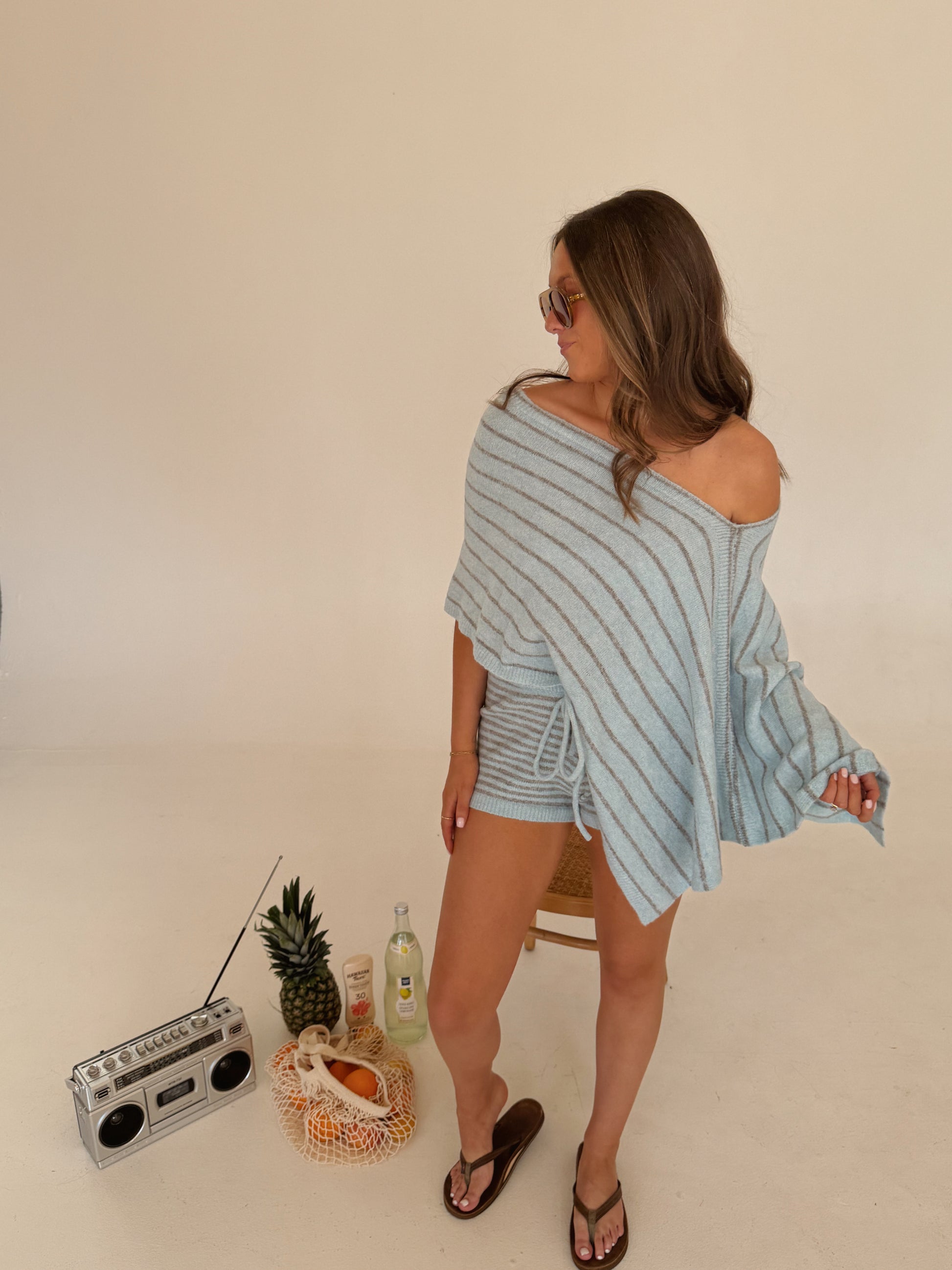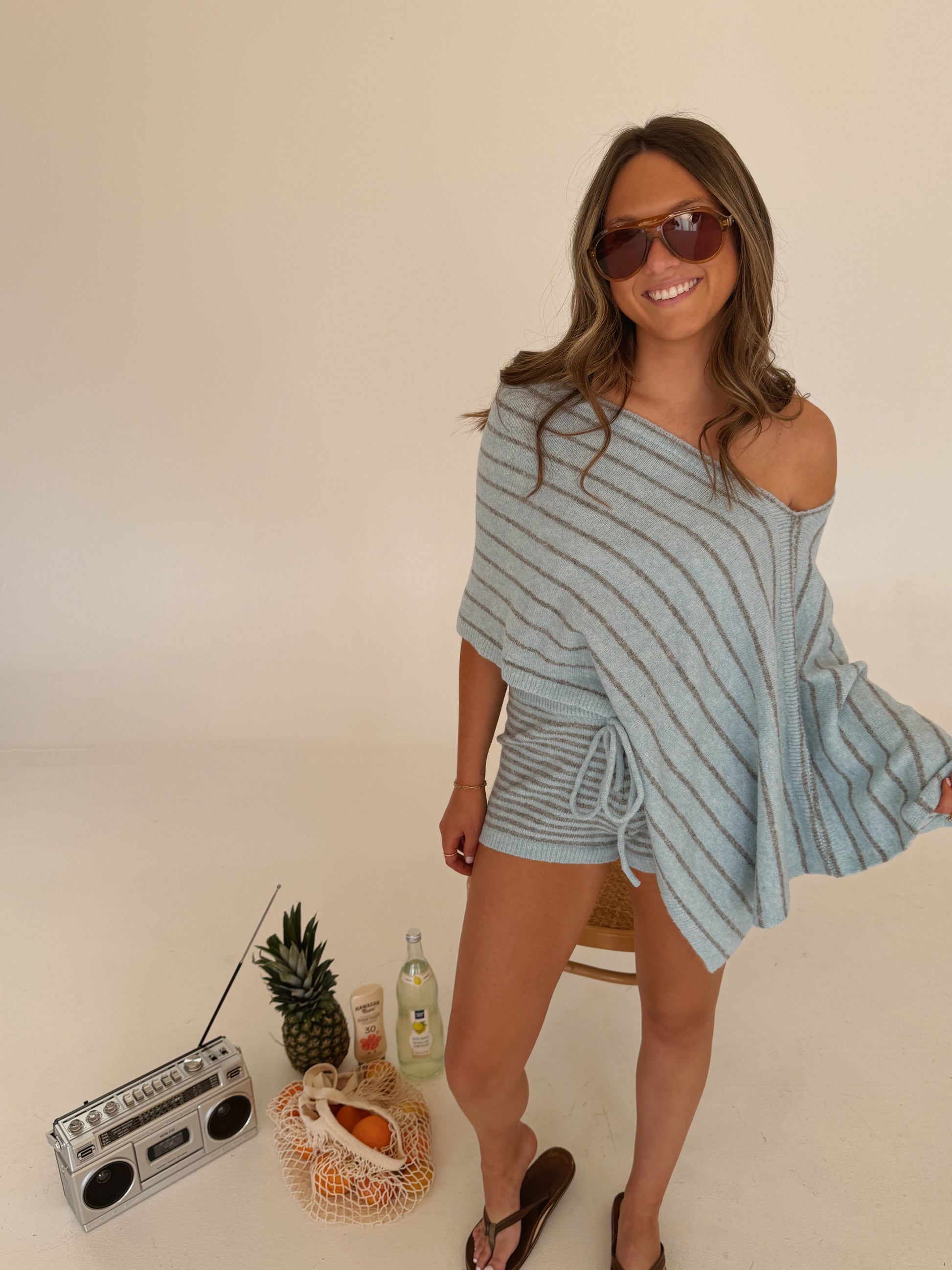 Striped Knit Poncho Set